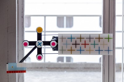 Kokesch Ádám tizennégy objektjét egységes installációként mutatja be az Antrepo ipari csarnokában, köztük korábbi és új, kifejezetten a biennále felkérésére készitett munkákat.